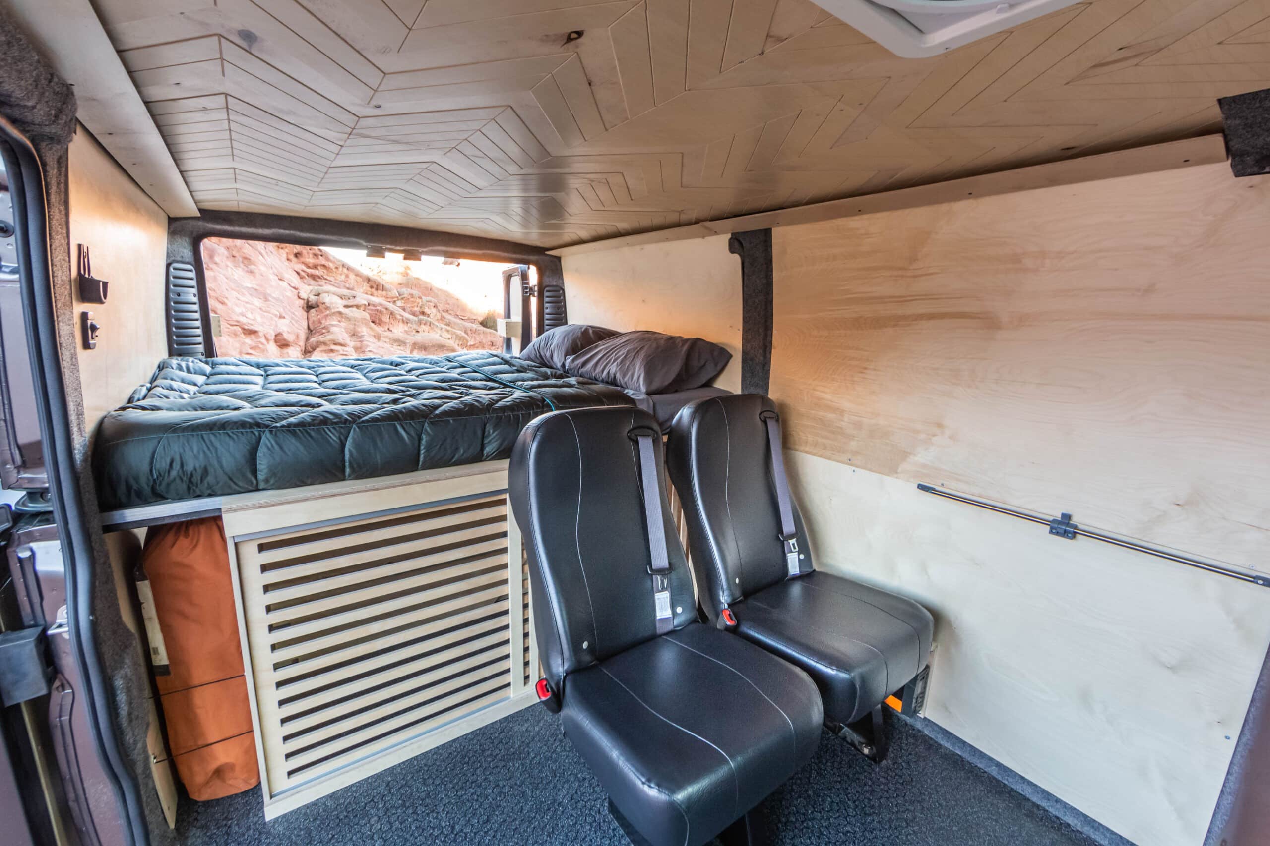 Not only does this customized campervan sleep four, it feeds four too. Its innovative, built in kitchen comes with everything you need to put on your camp chef hat and cook for the whole crew.